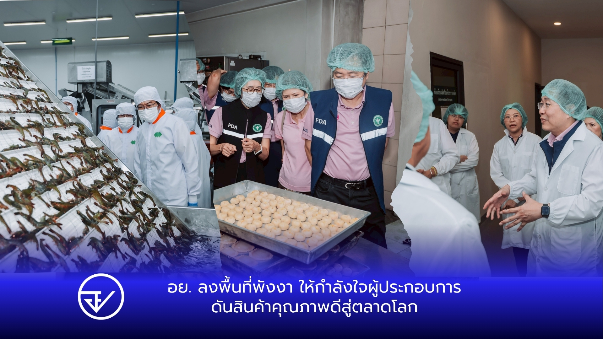 สำนักงานคณะกรรมการอาหารและยา (อย.) นำโดยนายแพทย์สุรโชค ต่างวิวัฒน์ เลขาธิการคณะกรรมการอาหารและยา พร้อมด้วยคณะผู้บริหาร เดินทางตรวจเยี่ยมและให้กำลังใจผู้ประกอบการในจังหวัดพังงา ระหว่างวันที่ 18 - 19 สิงหาคม 2568 เพื่อติดตามผลการดำเนินงานและส่งเสริมผู้ประกอบการไทยให้มีศักยภาพการแข่งขันทั้งในและต่างประเทศ