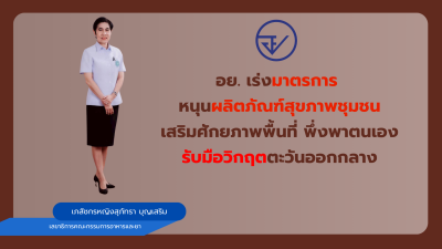 อย. จับมือภาคีเครือข่ายร่วมส่งเสริมและสนับสนุนผู้ประกอบการเศรษฐกิจฐานรากให้มีความเข้มแข็ง สร้างมูลค่าเพิ่มของผลิตภัณฑ์สุขภาพด้วยเอกลักษณ์และความคิดสร้างสรรค์ รวมถึงเปิดโอกาสในการแข่งขันสู่ระดับสากล ภายใต้แนวคิดจากภูมิปัญญาท้องถิ่นไทย พัฒนาไกลสู่สากล “From Local to Global”